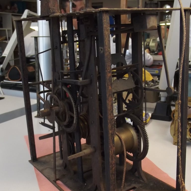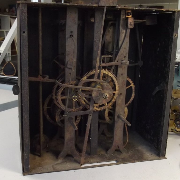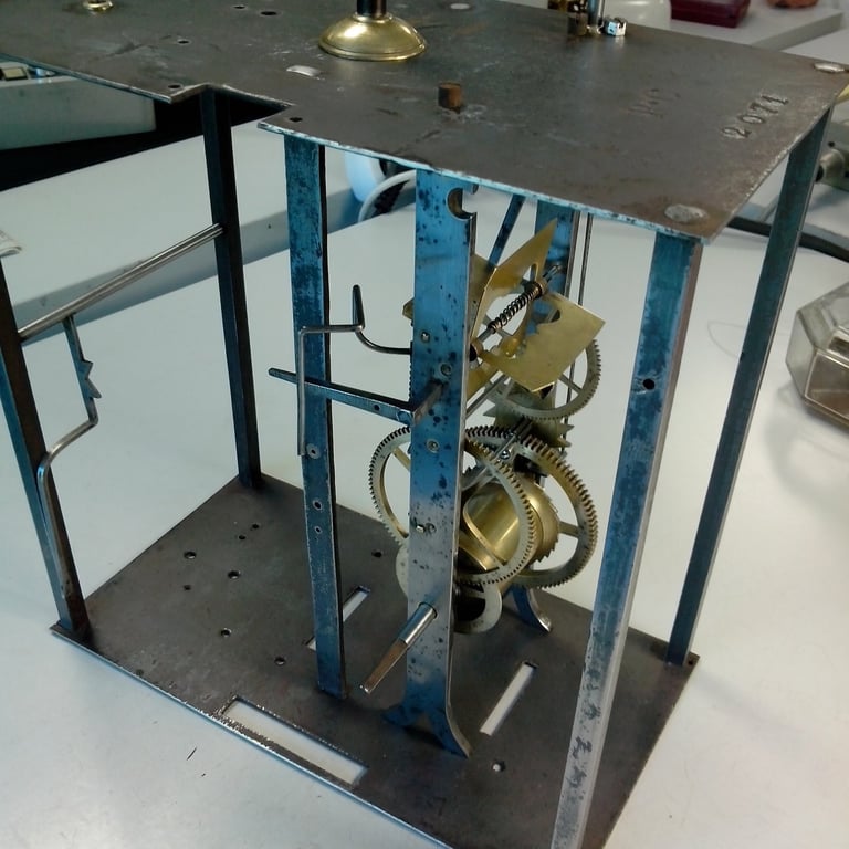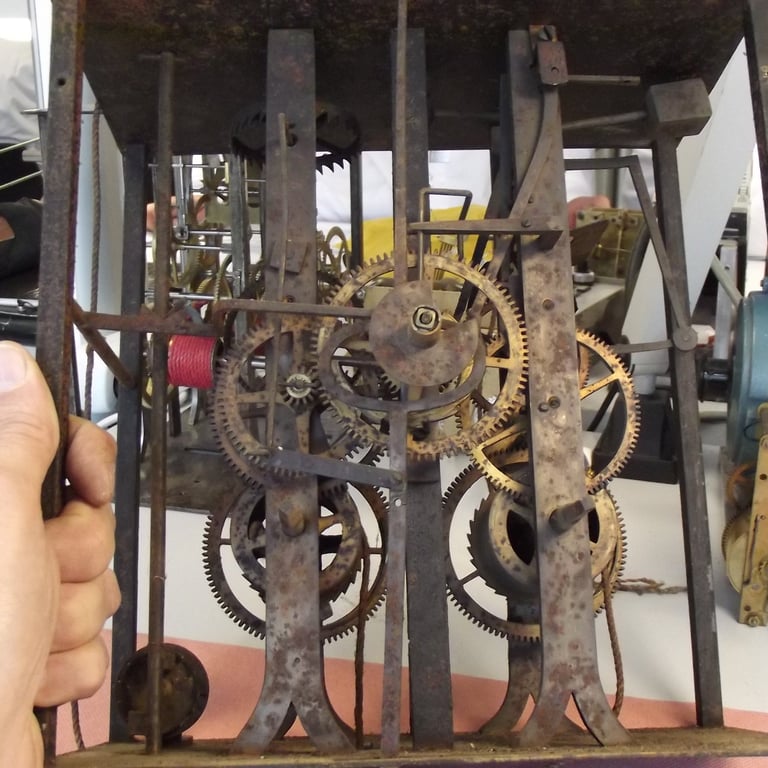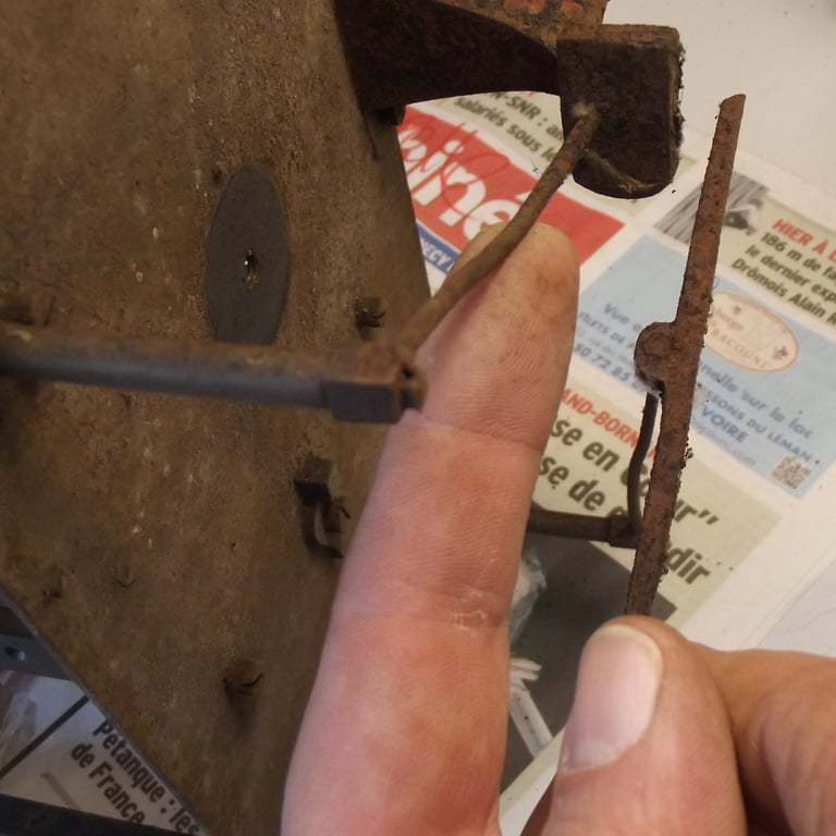 Voici un mouvement de type cage de fer d'une horloge comtoise du XIXe siècle dans un très mauvais état. Une rénovation s'impose. Voici les photos de la rénovation.