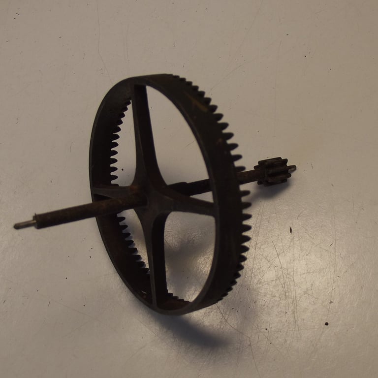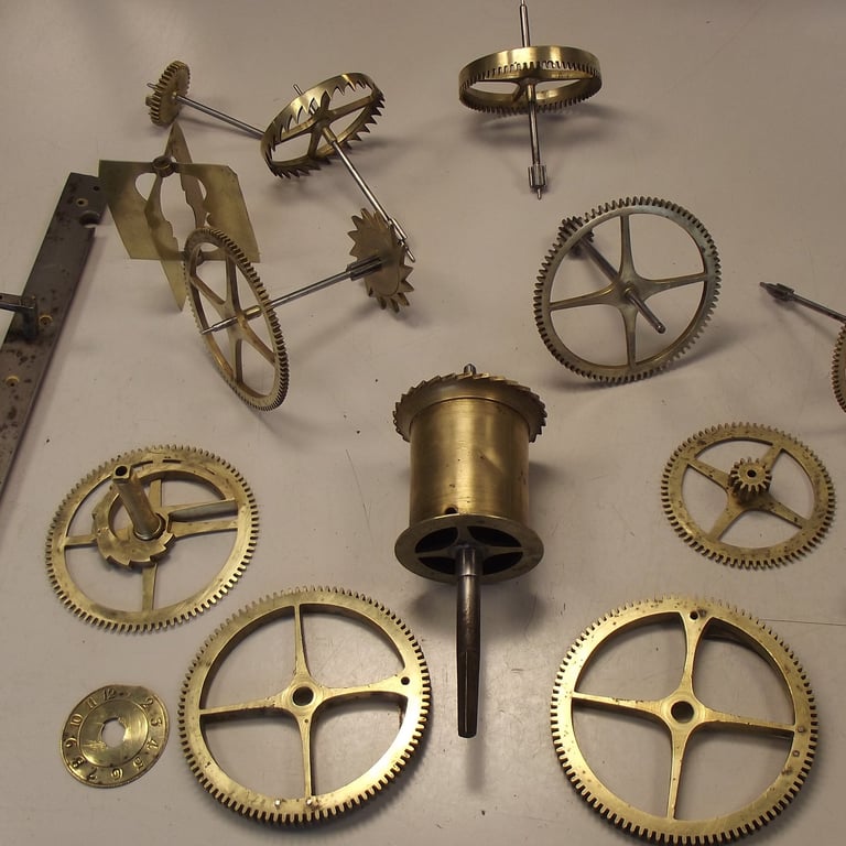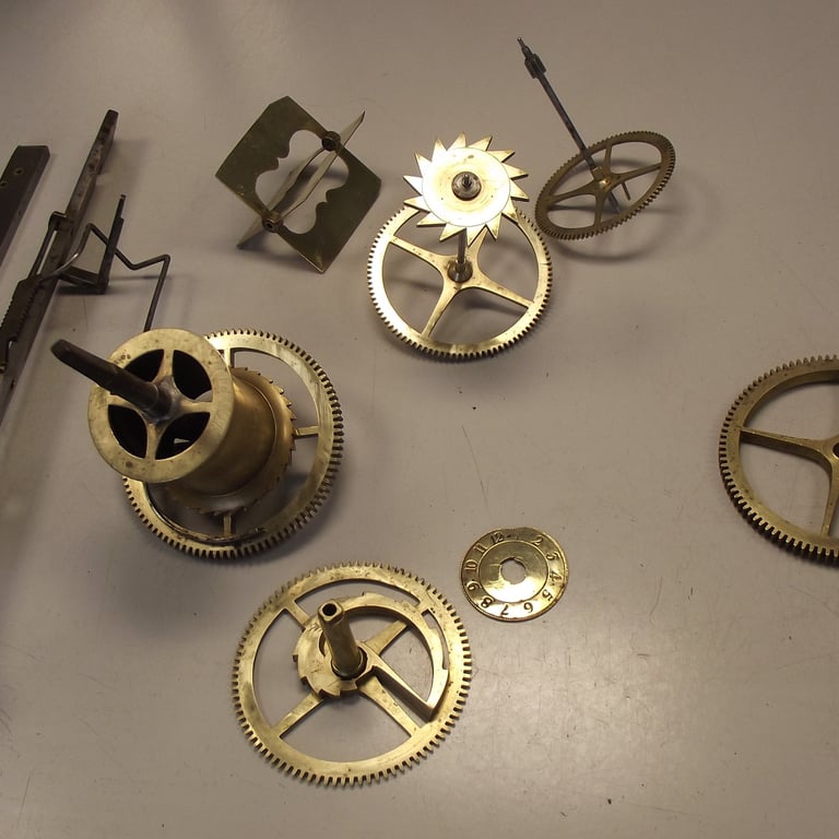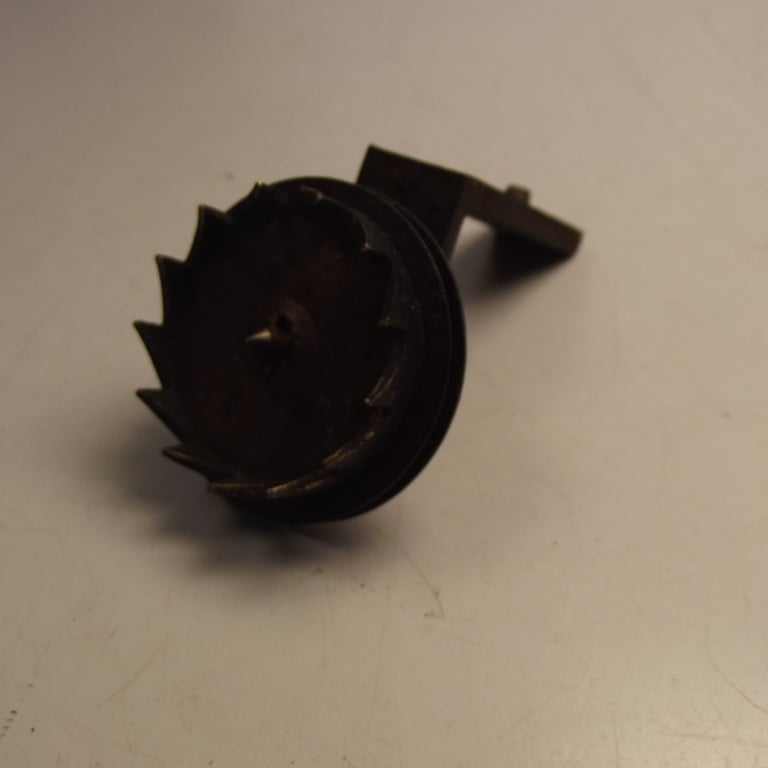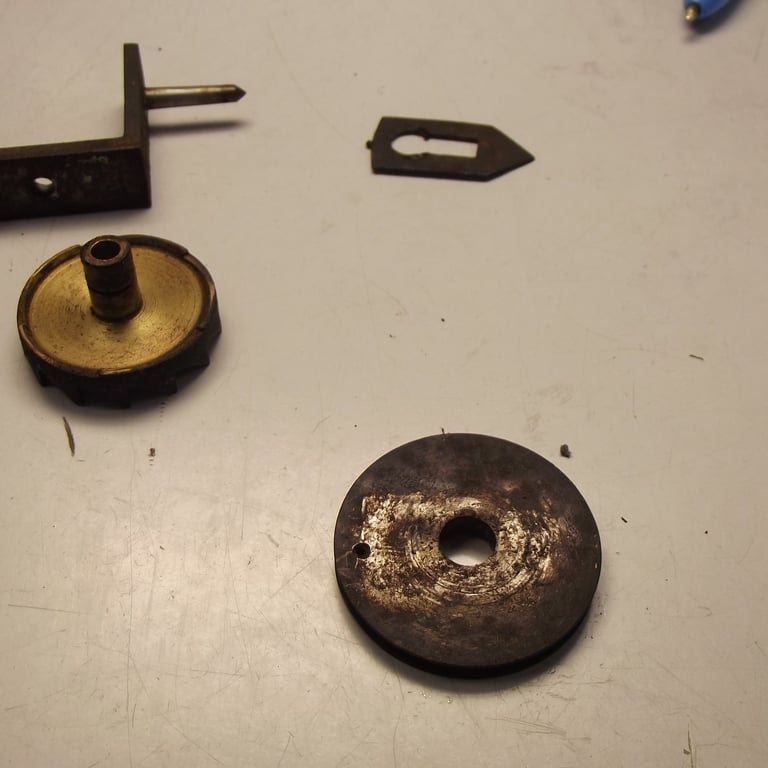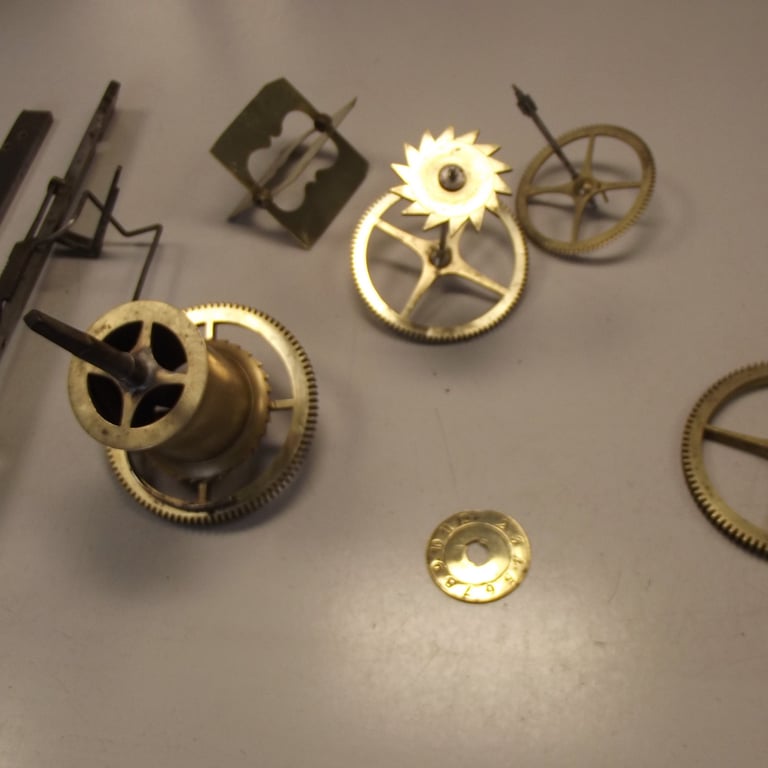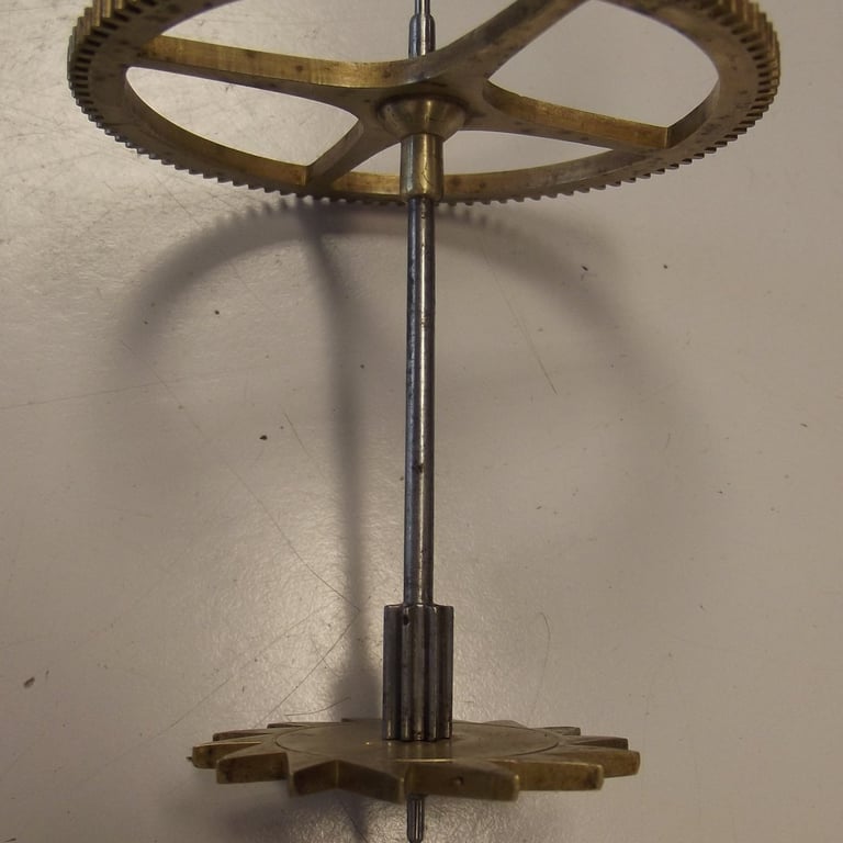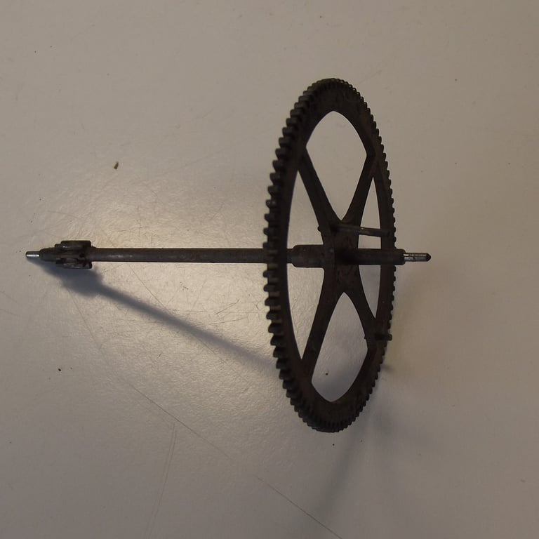 Une dent de la roue de rencontre est écrasée et perturbe l'échappement. Il faut donc concevoir une nouvelle dent à partir dun morceau de laiton. On appelle cela réaliser une queue d'aronde.