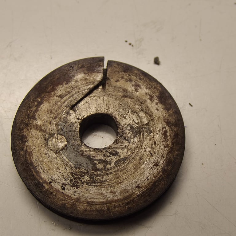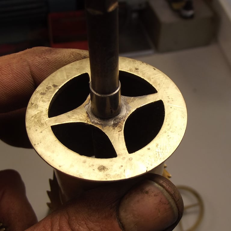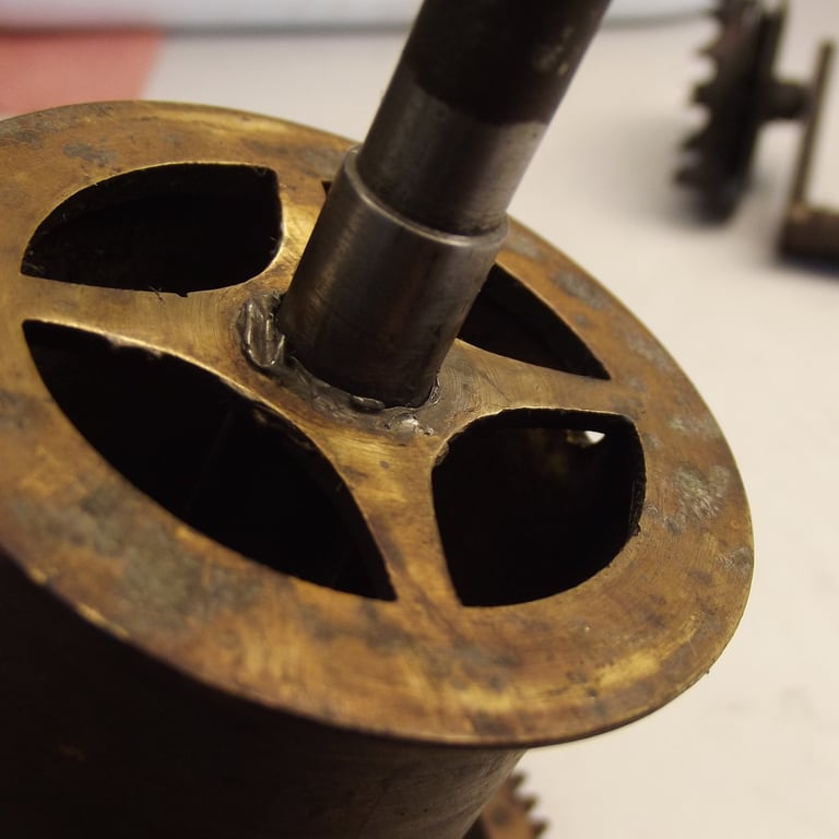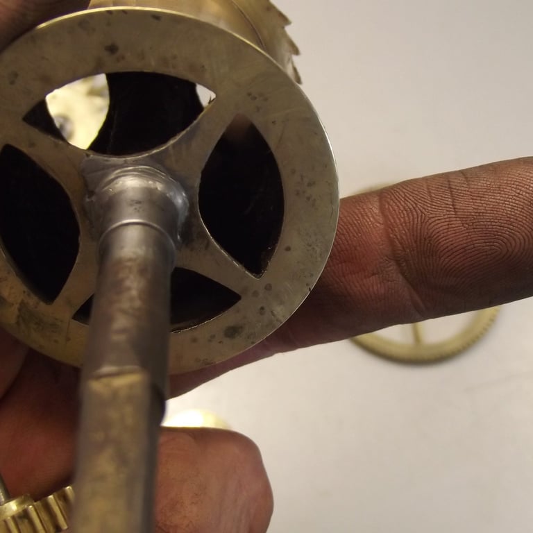 L'arbre du tambour du barillet est déssoudé. Une nouvelle soudure s'impose.