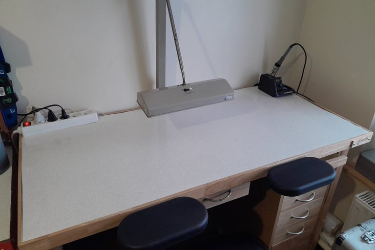 Afin de travailler dans de bonnes conditions, l'horloger utilise un établi spécialement conçu pour la profession, avec une hauteur importante d'environ 97 cm. Cette hauteur permet d'obtenir une position de travail tout à fait adaptée. En effet, sur une montre mécanique, la distance de travail entre le mouvement à réparer et l'œil n'est principalement que de quelques centimètres, voire même moins pour certains travaux. Pour améliorer le confort du poste de travail, il peut aussi être équipé d'accoudoirs. Compte tenu de la taille minuscule des composants, il est indispensable d'avoir un éclairage adapté.